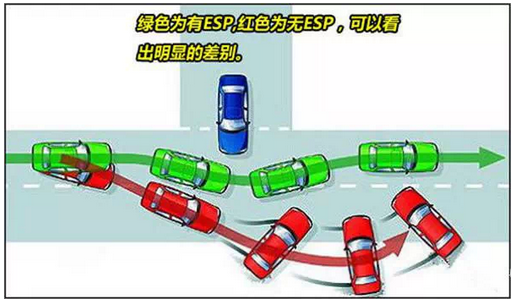 車身穩(wěn)定控制系統(tǒng)簡稱ESP,在轉(zhuǎn)彎和濕滑路面上它可以有效防止車輛失控而帶來的嚴重后果,彌補轉(zhuǎn)向不足。